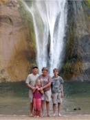 We made a trip to beautiful Kodachrome Basin in Southern Utah with our friend Karen Peterson and her family. We had a great time hiking 6 miles round trip to Calf Creek Falls. The temperatures were in the high 90s in the afternoon when we started the hike. Karen carried 3 yr. old Rush on her shoulders the 6 mile round trip to the falls where the temperature was 20 degrees less. The next week Colby, Joe and the “Pink Pony” traveled to Panguitch, UT to a motorcycle rally where they camped, hiked and had a good time together.